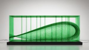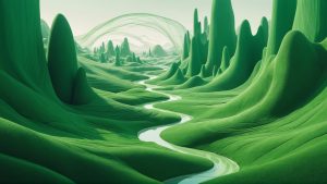 "A surreal artwork with fluid shapes and unexpected colors."